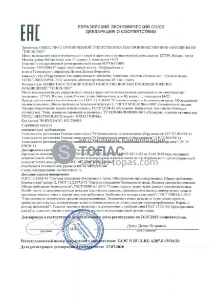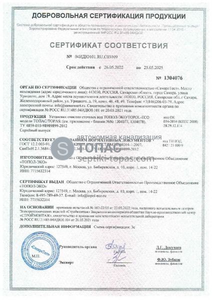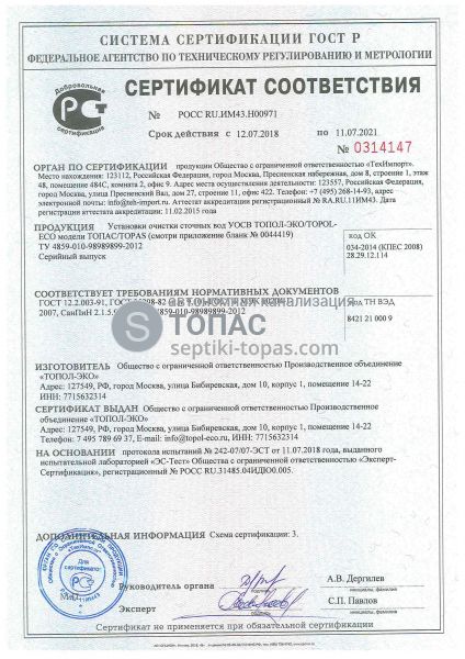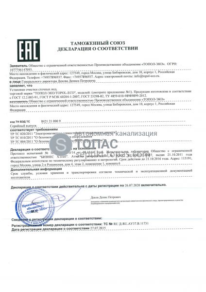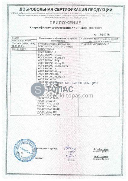 На участок заказчика септик Топас С 8 Лонг приезжает в полностью укомплектованном состоянии, его сразу можно установить и эксплуатировать. В стандартную комплектацию станции входят труба канализационная раструбная ПП 110х2,7 L=0,1 м, пруток сварочный ПП 7мм - 1 м, один компрессор 60 Вт.
